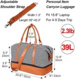 【FERFECT FOR 2-3 DAYS FLIGHT TRAVEL】The canvas weekend tote bag is designed to meet the flight regulation and requirements for carryon luggage and personal item. The spendanight bag fits nicely under the airplane seat and overhead bin on airlines. The back side of the foldable bag for girls with a 11.5 inch wide trolley sleeve allow you to slide it over the handle of a rolling suitcase. A 11*5 inch zipper pocket on the trolley sleeve to put your boarding pass and passport. Cute women duffle bag!