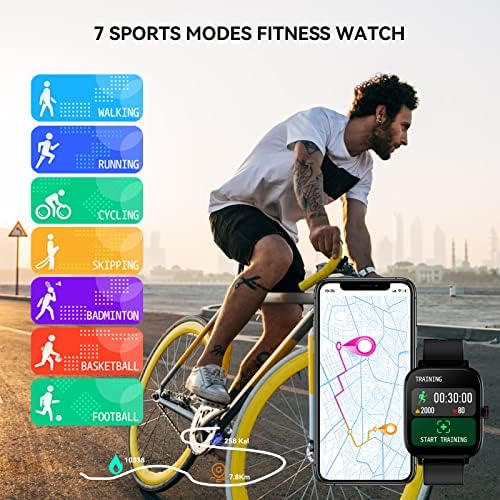 【Sports Watch and Life Assistant】This android smart watch supports 7 types of fitness trackers, you can choose the corresponding mode according to your sports, such as walking, running, skipping, cycling. It can also work as an assistant: Calories/Health/Sleep Monitoring, music and camera control, weather display, sedentary reminder, drink water reminder, alarm clock, stopwatch, find phone, which helps you live a convenient life.