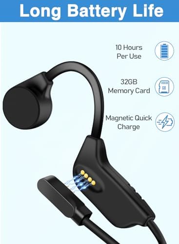 Built-in 32GB Memory: Waterproof Bluetooth headphones equipped with the latest Bluetooth 5.0 chip 32G memory, stable and durable connection. Ensures that the music follows your movement without continuous interruptions.With strong battery life,allows you to enjoy 6-8 hours of continuous music.