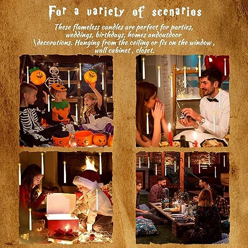 [HALLOWEEN INDOOR DECOR] Flickering floating candles are the perfect for a variety of indoor decorations, Create a “floating” candle effect for your party, The hangging candles with a magic wand remote will bring a feel of the magical world! This set of magic candles is a truly special Halloween decoration. Perfect for adding a touch of enchantment to your home decor, parties, weddings, or any special occasion.