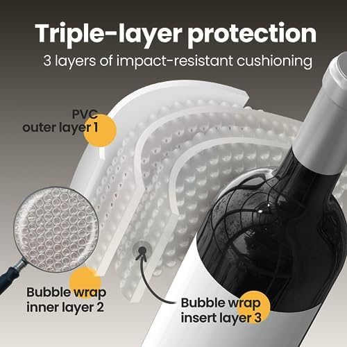 [SECURE AND PORTABLE] Each set (3-pack) of bottle sleeves comes with 3 extra inner air bubble wraps for double cushioning protection. Your vinos and drinks are easily secured with double zip-locks and velcro to seal the cover for extra security, making them the best portable wine travel companion to be placed in your bags, carrier or suitcase.