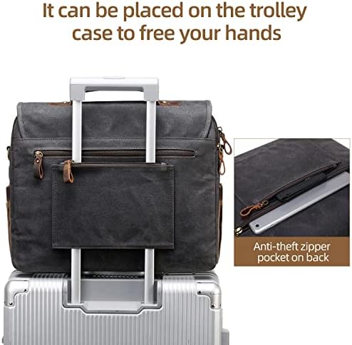 PLENTY ROOM FOR ORGANIZING: This messenger bag has 9 pockets to meet your smartphone, water bottle, umbrella, cards, wallet, laptop and anything else in its rightful place.Back side sleeve allows you to fit it in trolley case to free your hands.Perfect for a carry on, can fit under an airplane seat,Use this as a personal item on flight.