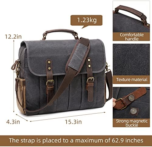 Detachable and adjustable shoulder strap.(Maximun:62.9 inches). The canvas messenger bag has a detachable shoulder strap that can be adjusted to the perfect length. The padded handles and straps also help ease your fatigue.