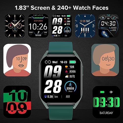 【250+ watch face & other features】BRIBEJAT BT6 smart watch can be easily controlled by the DaFit app. With a 1.83’’ much larger display area, it provides more than 250 watch faces to choose from and DIY your watch faces. Includes other useful functions for you: breath training, women’s health tracking, weather, music control, calculator, stopwatch, alarm clock, timer, flashlight, find the phone, and so on. Also installed 4 games on the watch for you. It is far more than a simple watch