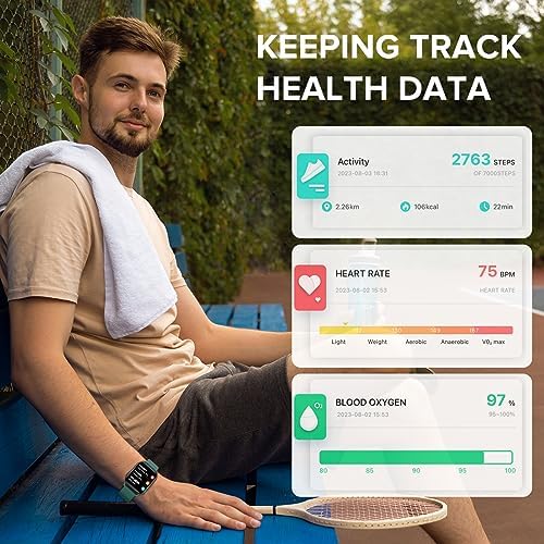 【24/7 all-round health tracking】High-performance optical sensors, the smart watch for Android and iPhone will timely and precisely work as a fitness tracker to record your daily walking steps, distances, calories, continuously monitor your heart rate, blood oxygen, stress, and sleep quality with a detailed data-based presentation to analyze and remind your body status and trend from your wrist, give you the advice to help you adjust the lifestyle