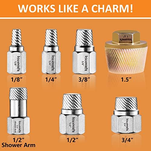 【Solid Construction】 6PCS pipe nipple extractor conforms to AISI/SAE/ASTM standard steel number 5140 – 40Cr. The bathtub drain is made of Cr Stainless Steel.