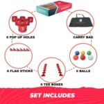 ✅ PORTABLE PLAY IT ANYWHERE : The entire 6 hole bucket golf set fits into the carry bag so it can be easily taken to play anywhere at parks, beaches, hotels, backyards, lawns etc. The best game to spice up your parties, vacations and birthdays.