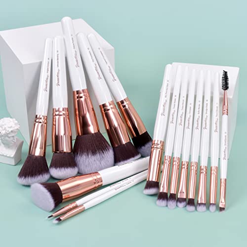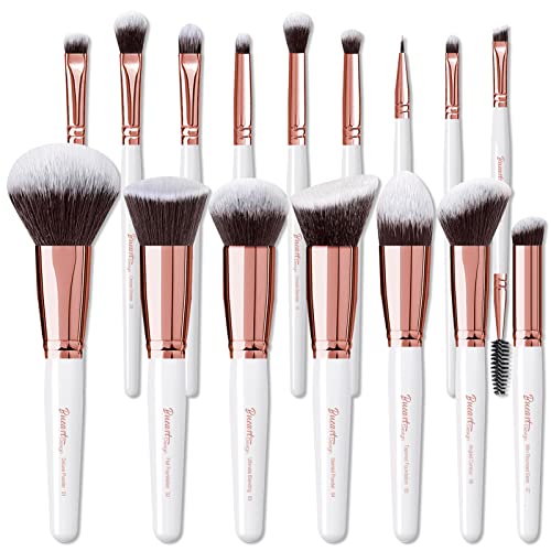 Bueart Design 16Pcs ULTRA SOFT Pearl white labeled Rose Gold Makeup Brushes set Make up brushes face brush Foundation Powder Blending Blush brushes