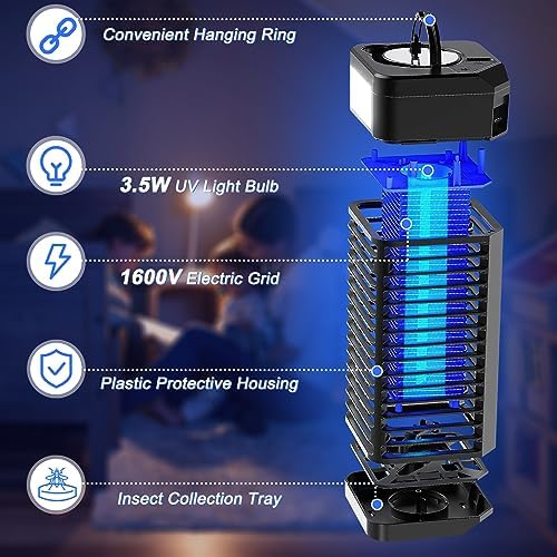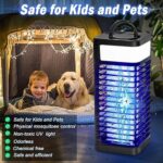 [UV blue & LED Light] UV blue technology, significantly boosting its effectiveness in attracting and eliminating mosquitoes, flies, wasps, moths, and other flying insects. 3 Modes LED Light (High | Medium | Strobe) it serves not only as an efficient bug zapper but also as a versatile companion for daily lighting, camping, and night walks, catering to various needs.