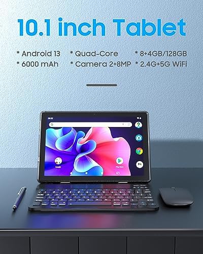 【5G Wi-Fi+Large battery】The high resolution 10.1“ tablet is equipped with a 1280 x 800 full HD all-glass G+G material IPS display for a more comfortable using experience. The 6000mAh lithium polymer battery and 2.4G+5.0G WIFI allow you to enjoy up long time of reading, surfing the web, and more, you can use it at home or travel.
