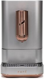 Make delicious Espresso, Americano, Lungo, or dispense hot water with the Cafe Affetto Automatic Espresso Machine. With a single press of a button and in less than 90 seconds, this automatic espresso machine dispenses your desired brew. Customize drink preferences by volume and strength, with a smart espresso machine that syncs with the SmartHQ app. Beans remain fresh in the built-in bean hopper that holds over 6 ounces. To ensure even extraction for a balanced tasting cup, beans are pre-infused with low pressure to gently bloom optimal flavor profiles and gradually increased to 20 bars of high rated pump pressure. You can control your grind size with 5 levels ranging from coarsest to finest for ideal taste and aroma extraction. With a removable water reservoir and adjustable dispensing spout, cleaning and using your espresso machine is easier than ever.