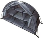 Sturdy and lightweight: camping accessory with 9 shelves. Built-in ground straps for staking.