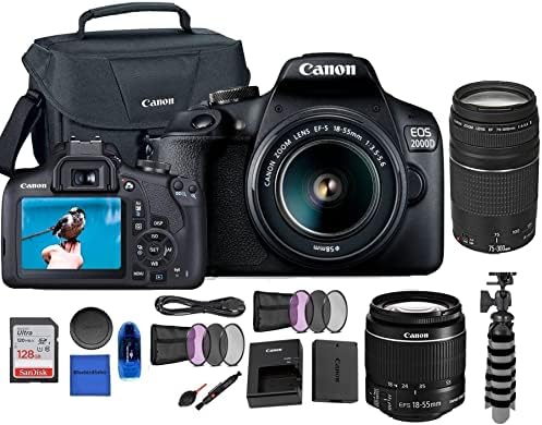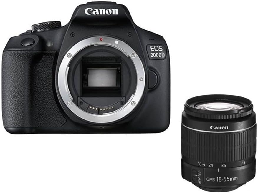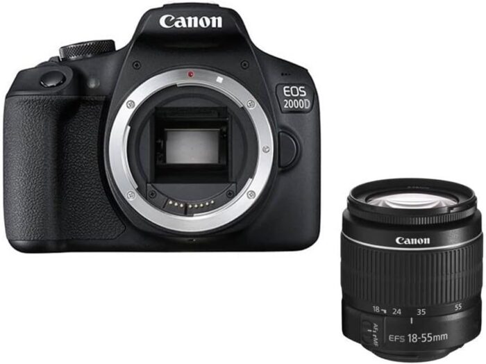 EOS 2000D DSLRCamera Body (International Version )- 24.1MP APS-C CMOS Sensor, DIGIC 4+ Image Processor, 3.0″ 920k-Dot LCD Monitor, Full HD 1080/30p Video Recording, 9-Point AF with Center Cross-Type Point, ISO 100-6400, Up to 3 fps Shooting, Built-In Wi-Fi with NFC, Scene Intelligent Auto Mode , Creative Filters and Creative Auto Modes