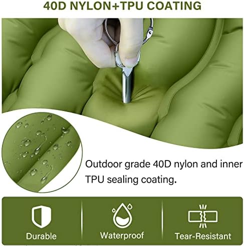 【Durable 40D Nylon】 Camping sleeping pad made of outdoor-grade 40D nylon and inner TPU sealing coating. Durable, hard wearing, no tearing and easy to clean. Ergonomic design allows you to sleep comfortablely even in rough outdoor environments. Our inflatable camping mattress have undergone strict quality inspection, so please use them with confidence.