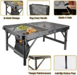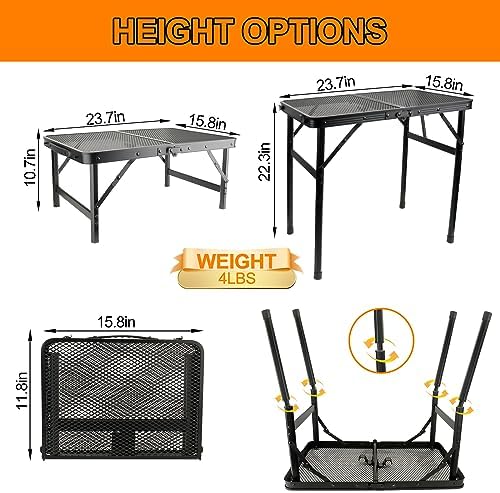 【Easy to Use】This portable picnic table adopts the unique design of the coating mesh table, which can effectively avoid water accumulation and rust. And it is easy to clean, so you don’t have to worry about stains or spills. The metal mesh desktop is not afraid of high temperatures, allowing you to set up a small grill and enjoy outdoor dining in style.