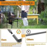 【Premium Material】This camping table is made of premium aluminum alloy, which has exceptional durability and strength. Its unique hexagonal tube design provides increased stability compared to ordinary iron tubes. Each side features a triangular support structure and 4 latches, ensuring the table stays steady.