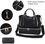 🎁Structure: durable and comfortable quilted, 5 metal studs on the bottom and solid copper hardware ensure the duffle bag long lasting durability.The travel bag has a padded compartment to fit 15.6″ laptop and a flat separate compartment that can accommodates shoes, toiletry bag or other items whatever you want to keep separate.