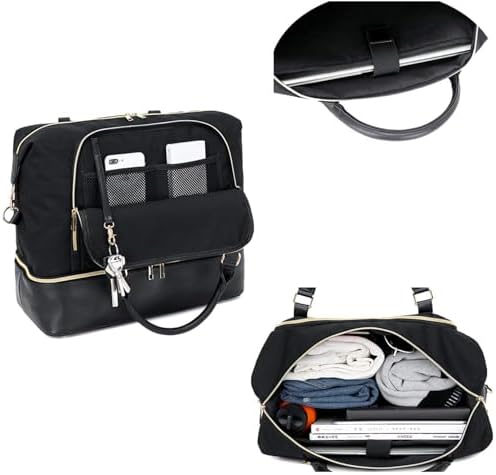 Price: (as of – Details) Travel Duffel Bag,Sports Tote Gym Bag,Shoulder Weekender Overnight Bag for Women With Toiletry Bag 【Dry