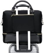 ✈️ Back side with a zipper pocket, and the trolley sleeve contributes an easy way to slide the tote on your rolling suitcase handle. It’s an ideal weekend overnight bag for business and personal travel.