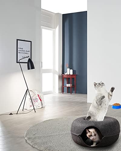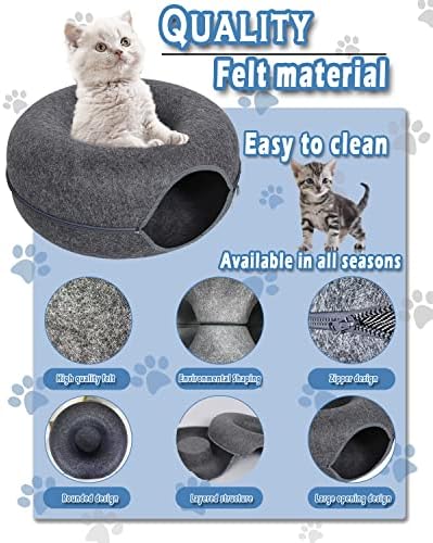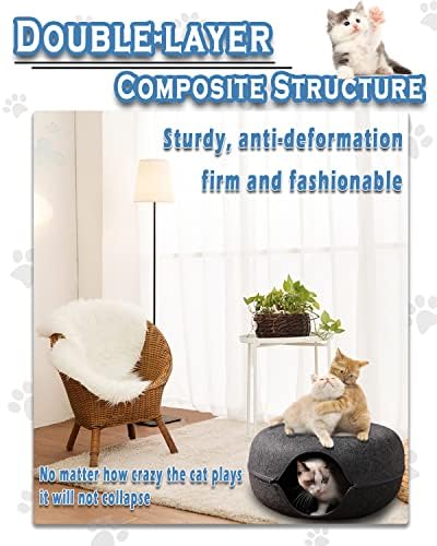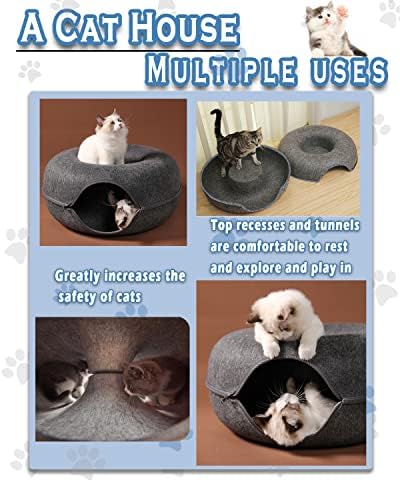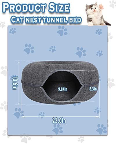 🐱【Multi-purpose in One Nest】: The depression at the top of the felt cat tunnel can rest comfortably. You can play and explore inside the tunnel. You can also rest while playing in the tunnel, which greatly increases the cat’s sense of security.BLANK AREA
