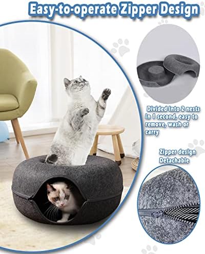 🐱【Zipper Design】: The cat donut tunnel design can be divided into two parts by connecting the upper and lower zippers. One nest becomes two nests, which is easy to disassemble and wash. It can also be easily carried when traveling, and can also be used according to the four seasons. The simple assembly method can make it easier for cats Rest and play while this cleans every corner of the tunnel.