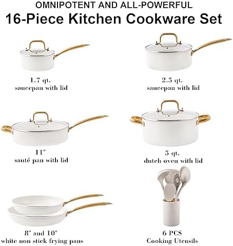 Home Home & Kitchen Kitchen Appliances Ceramic Pots and Pans Set – Kitchen Cookware Sets Nontsick Non Toxic Cookware Set With Dutch Oven, Frying Pan, Saucepan, Sauté Pan, Cooking Utensils Set, Gold Pots and Pans for Cooking Set Gifts