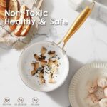 【Naturally Nonstick】- No more sticky or difficult-to-clean problems. The pots and pans set nonstick require less oil or butter for cooking and minimal scrubbing for a spotlessly clean, giving you a healthy and easy at-home culinary experience.