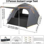 Large Space for 3 Persons: The tent size 80.7*70.9*45.3in(internal), 88.6*78.7*53.1in(external). The pack up size is only 31*7*7in, weighs 10.47lb. It is spacious enough to accommodate 3 persons. The thickened and lengthened 12 ground steel stakes, 6 wind ropes, and 2 hall poles make it’s the best choice for fishing, festivals and outdoor recreational activities.