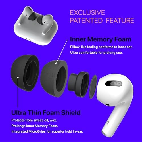 [Protective Foam Shield] Durable protective layer over the inner memory foam. Protects from soaking sweat, wax, and oil. Less replacements than memory foam only. [Ultra Soft Inner Memory Foam] Conforms and expands to your inner ear. Ultra comfortable. Alleviates any pain from silicone-only tips.