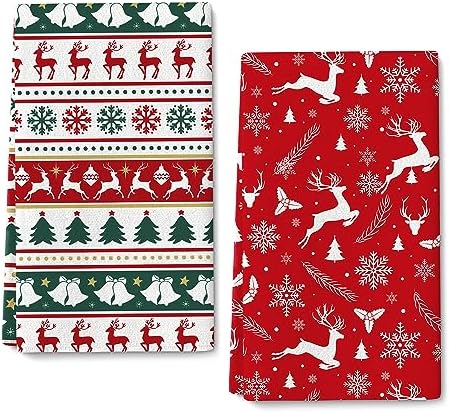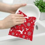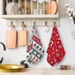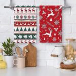 Xmas kitchen drying towels set of 2 measuring 16″x24″/40cmx60cm, and each of them is designed with a hanging loop for easy storage.