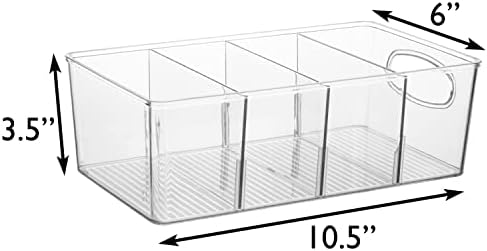 QUALITY CONSTRUCTION – Made of durable and clear BPA and Chlorine free shatter-resistant plastic. They are food safe and can be cleaned easily with mild soap and water. Removable dividers offer flexibility in organizing items of different sizes and shapes. Each measure 10.5” x 6” x 3.5”