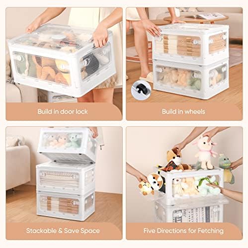 Closet Organizers and Storage 8.4 Gal, Storage Bins with Lids and Wheels, Stackable Closet Organizer Trunk Car Organizer, Plastic Foldable Box Collapsible Storage Bins for Dorm Room