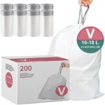 [DRAWSTRING BAGS] 200 count total trash bags included. White trash bag with grey drawstring closure for easy tying and carrying.