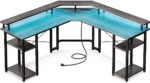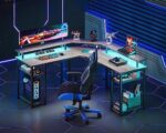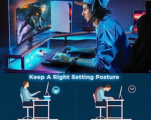 【Abundant Storage Capacity】The dimensions of this corner desk: 55.9″ (L) x 55.9″ (W) x 18.9″ (D) x 35″ (H).This gaming l desk comes with a full monitor stand, which is long and wide enough to provide a spacious top surface for multiple monitors. Giving you plenty of room to store your items. This ergonomically designed desk elevates your line of sight, allowing you to maintain proper sitting posture and avoid the discomfort caused by poor sitting posture.