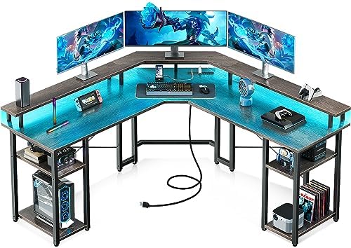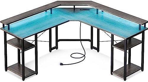 【Double Shelves Design】 This multi-purpose modern desk has two-tier shelves on both sides, so you can place not only dual computer hosts but also your headphones and other devices. Freeing up space, keeping your desk clean and tidy. This reversible l desk can be installed in both the left and right corners.