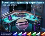 【Cool Lighting Effects】This gaming desk features LED lighting with 7 colors, 13 lighting modes, 8 adjustable brightness levels and 9 flicker frequencies to create an immersive and cool gaming atmosphere while illuminating your desktop at night. It has a memory function that keeps the LED light in the last mode when turned on. You can adjust the color and mode of the light strip as you want and start gaming!