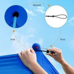 SUPERIOR MATERIAL&SUN PROTECTION: Our pop up shelter is constructed of sturdy and elastic polyester fabric coated with UPF 50+ protection that blocks 98% of harmful UV sun rays and has water-resistant functions, premium materials can effectively prevent stretching and tearing, providing all-day protection for your family on both sunny and rainy days. The thickened aluminum poles with a conical design at the bottom ensure insert deeper into the beach or grass, more stable and not easy to bend.