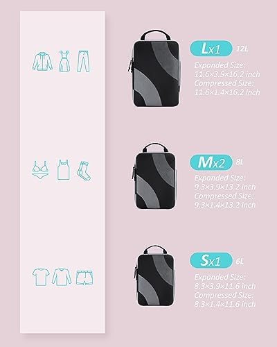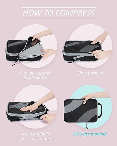 Compression Packing Cubes, BAGSMART 4 Set Travel Packing Cubes for Carry on Suitcases, Compression Suitcase Organizers Bag Set & Travel Cubes for Luggage, Lightweight Packing Organizers Black