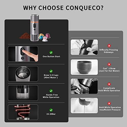 ULTRA FAST HEAT TIME – Our portable auto espresso maker features with ceramic heating tech and brews espresso coffee (96℃/205℉) in 2.5 minutes. Cold water takes only 3-4 minutes to heat up, which is 6 minutes quicker than some brands. 15 bars pressure keeps the capsule/ground coffee extracted perfectly and ensures the espresso with rich crema and aroma. Compatible with Nespresso & LOR & Starbucks & Lavazza & illy Original capsule pods.