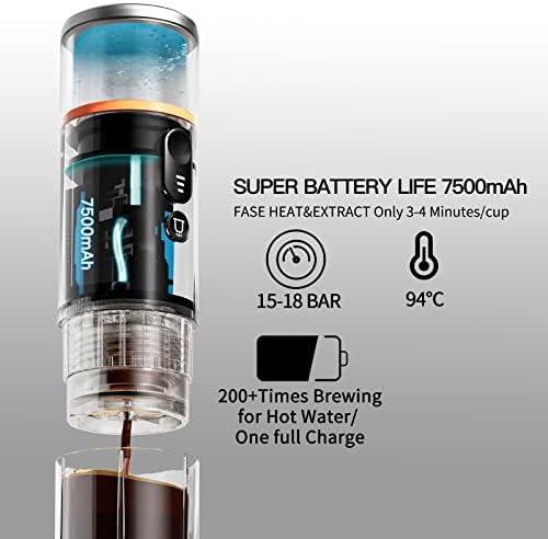 HIGH-EFFICIENCY EXTRACTION AND PORTABILITY – 2-3 Mins Fast Self Heating: USE COLD WATER: press the power button for 2 seconds to start the heating and enjoy the coffee in about 2-3 minutes. USE HOT WATER: press the pump button for 5 seconds, you can get the aromatic coffee at once. Our travel coffee maker is made for outdoor enthusiasts and coffee addicts. Its small size and cordless design are perfect for car, camping, hiking, backpacking, home office, a picnic.