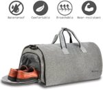 WATER-RESISTANT DUFFEL BAG; Using high quality Polyester Fiber & Jacquard, this garment bag is scratch-resistant, anti-tear & anti water splashing. Included is a detachable shoulder strap, so it can be shoulder bag if needed. The detachable shoulder strap is adjustable to make this garment bag fits your shoulder well.