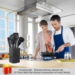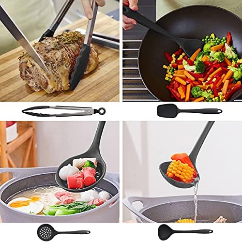 Home Home & Kitchen Cooking Utensils Set,Silicone Kitchen Utensil Set 15PCS,Non-Stick Silicone Kitchen Utensils,Heat Resistant 446°F Kitchen Tool Set,kitchen essentials for new home(Non Toxic) Black