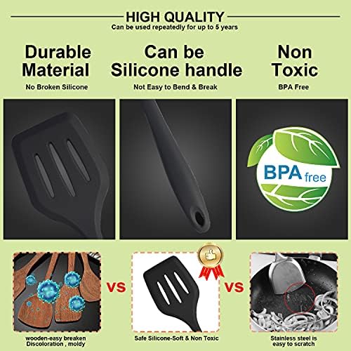 【FOOD GRADE SAFE SILICONE COOKING UTENSILS SET】BPA-free,very safe to use in any type of food.This silicone cooking utensil does not react with food or beverages,or produce any hazardous fumes,you don’t have to worry about the health of your families