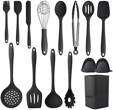 Cooking Utensils Set,Silicone Kitchen Utensil Set 15PCS,Non-Stick Silicone Kitchen Utensils,Heat Resistant 446°F Kitchen Tool Set,kitchen essentials for new home(Non Toxic) Black