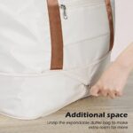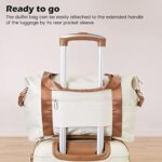 The duffel bag, backpakck and toiletry bag are all made of polyester fabric which is mild water-resistant. The duffel bag and backpack are both designed with the back sleeve, so you can conveniently attach them to the retractable luggage handle. There are multiple functional pockets in the backpack, making it versatile for different needs of travel.