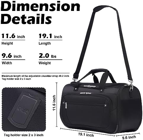 Size & Details: The dimensions of the travel bag is 19.1’’(L) x 9.6’’ (W) 11.6’’(H). It weighs 2.0 lbs with the capacity of 35L. It is an excellent choice for business trip or vacation travel.