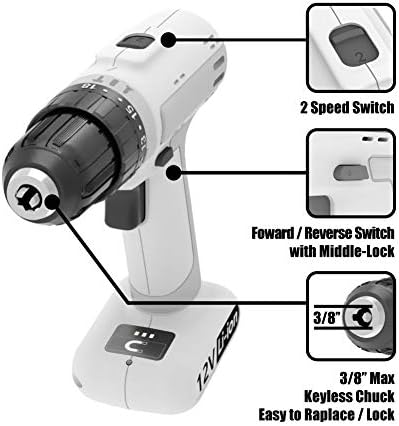 Effortless & Efficient: With 18+3 clutch settings, the small drill meets different screwing needs on various materials. Choose from two speeds (0–375 RPM or 0–1400 RPM) suitable for both beginners and experienced users. Enjoy a simpler experience. The 3/8-inch keyless single-sleeve ratcheting chuck makes changing bits quick and easy, and the forward/reverse switch allows effortless screw driving.