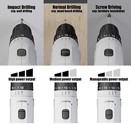 HIGH PERFORMANCE: 18 Torque Setting +3-IN-1 Mode (Screwdrier/Drilling/Hammer)
