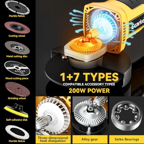 ⚡BATTERY POWERED:Ecarke power grinder tool for dewalt 18V/20V Lithium-ion Batteries DCB206 DCB205 DCB204 DCB181 DCB182 DCB200 DCB203 DCB205-2 DCB204-2 DCB206-2 and more. Easy to use even when there is no power supply outdoors, as long as you bring batteries. And you no longer need to be tethered to an outlet or struggle with tangled cords, making it easy to work in tight spaces, on job sites, or outdoors and family.