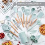 Sleek Storage and Maintenance: The included bamboo utensil holder not only keeps your kitchen organized but also adds a touch of elegance to your countertop. Cleaning is a breeze – the silicone tops are dishwasher-safe, and the bamboo handles can be easily wiped clean for long-lasting beauty and functionality.